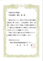 令和元年12月12日、県道七五号側溝整備工事他一件の施工について、神奈川県県西土木事務所小田原土木センター所長より御礼状をいただきました。…